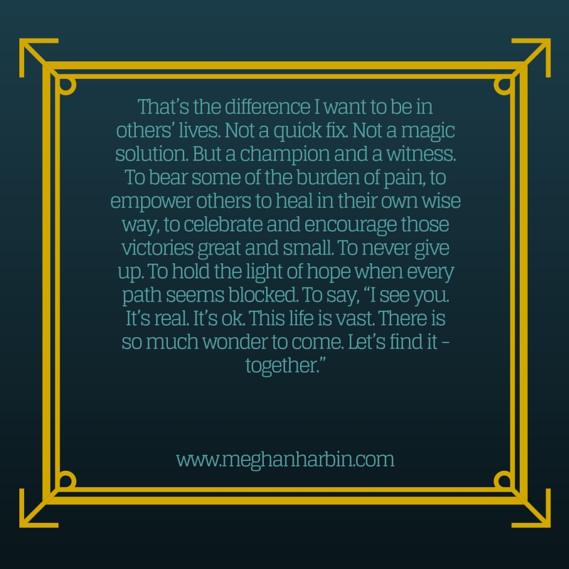 Why did I become a therapist? I wanted to make a difference. I wanted others to know that they weren’t alone in their aloneness. That there was no shame in wanting a better life. That there was nothing wrong or broken about feeling broken sometimes. That's the difference I want to be in others’ lives. Not [...]